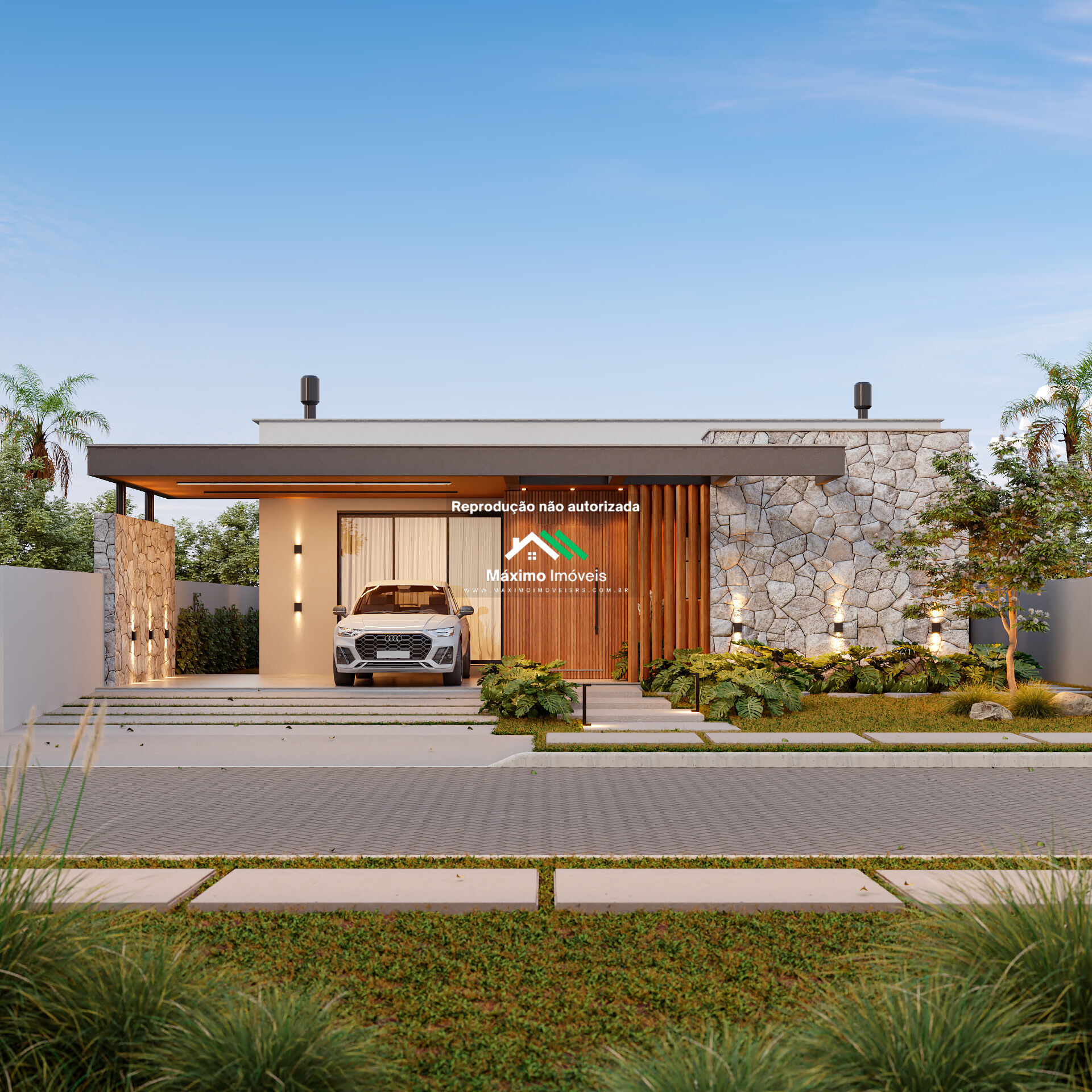 Com um terreno de 444,38 m² e área construída de 191,32 m², a casa é totalmente térrea, garantindo acessibilidade e conforto. Seu desenho em formato de “U” valoriza a entrada de luz natural e a conexão direta de todos os ambientes com o jardim, piscina e varandas, criando um verdadeiro oásis privativo.