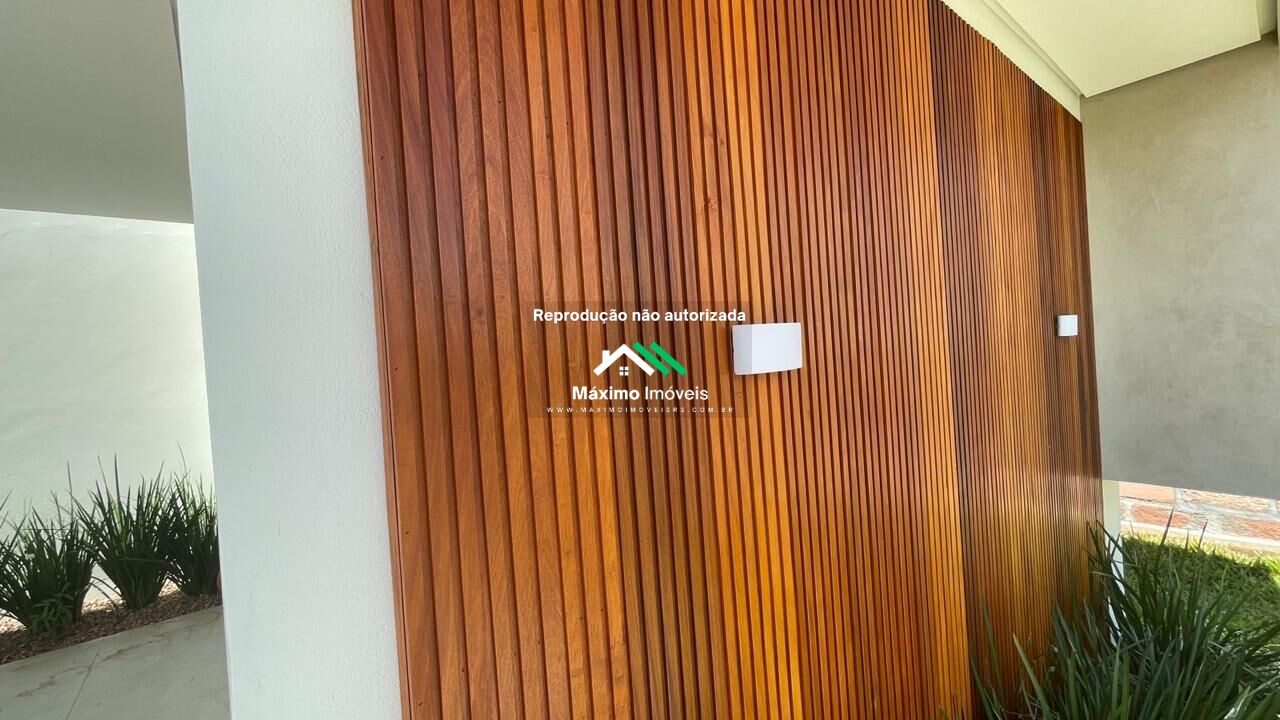 O acabamento reforça o padrão do imóvel: porcelanato, paredes com massa corrida e esquadrias em alumínio. Já possui esperas para água quente, ar-condicionado e câmeras de segurança, facilitando futuras instalações. A iluminação externa valoriza a fachada e destaca os detalhes do projeto.